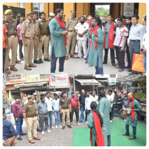 लखनऊ। नाका थाना क्षेत्र में शनिवार को “नए कानूनों के प्रति जागरूकता अभियान 2.0” के तहत झंडेवाला चौराहे पर विशेष कार्यक्रम आयोजित किया गया। कार्यक्रम का नेतृत्व चारबाग चौकी प्रभारी विश्वजीत सिंह और बशीरतगंज बीट प्रभारी अजीत राय ने किया।