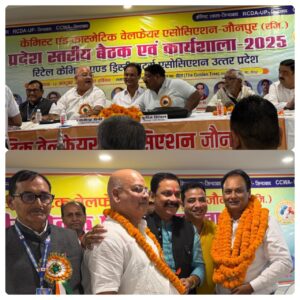 जौनपुर। रिटेल केमिस्ट एंड डिस्ट्रीब्यूटर एसोसिएशन (RCDAUP) की प्रदेश स्तरीय बैठक एवं कार्यशाला का सफल आयोजन सोमवार को जनपद जौनपुर स्थित होटल द गोल्डन ट्री में किया गया। इस अवसर पर प्रदेश के लगभग सभी जिलों से पदाधिकारी एवं दवा व्यापारी उपस्थित रहे।
